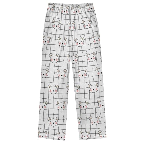 Boy's Lounge Pants Cute Bear Nursery Plaid Kids Jogger Pants Elastic Waist Long Bottoms with Pockets 6-14 Years 6