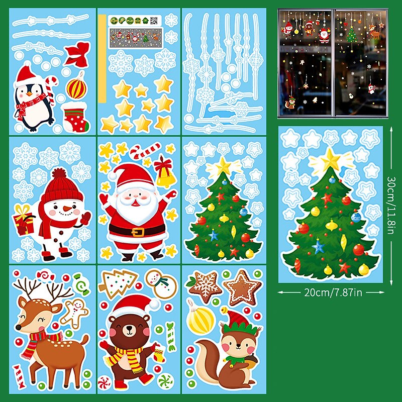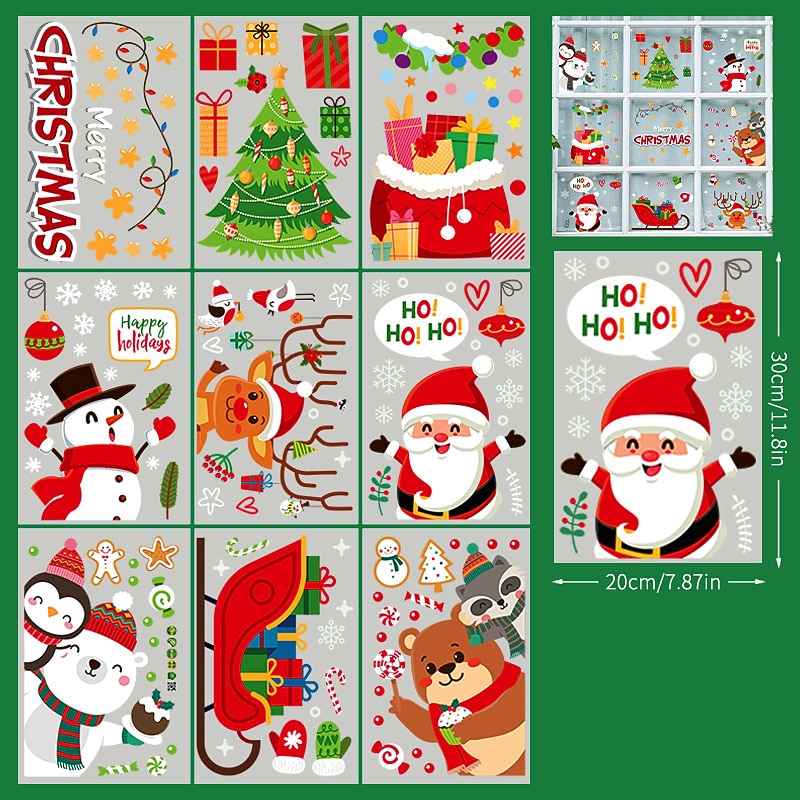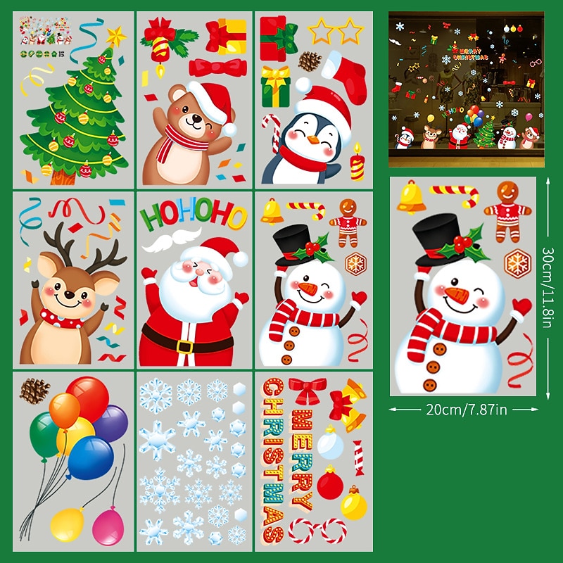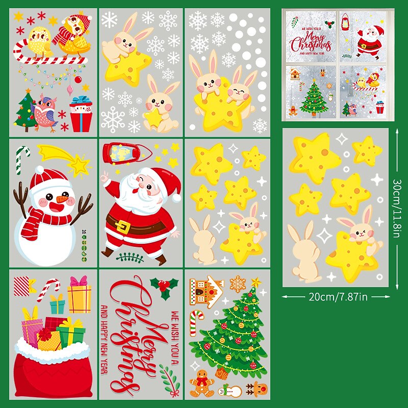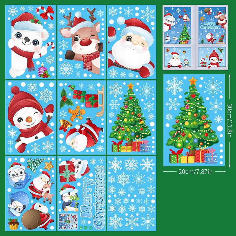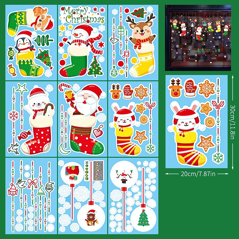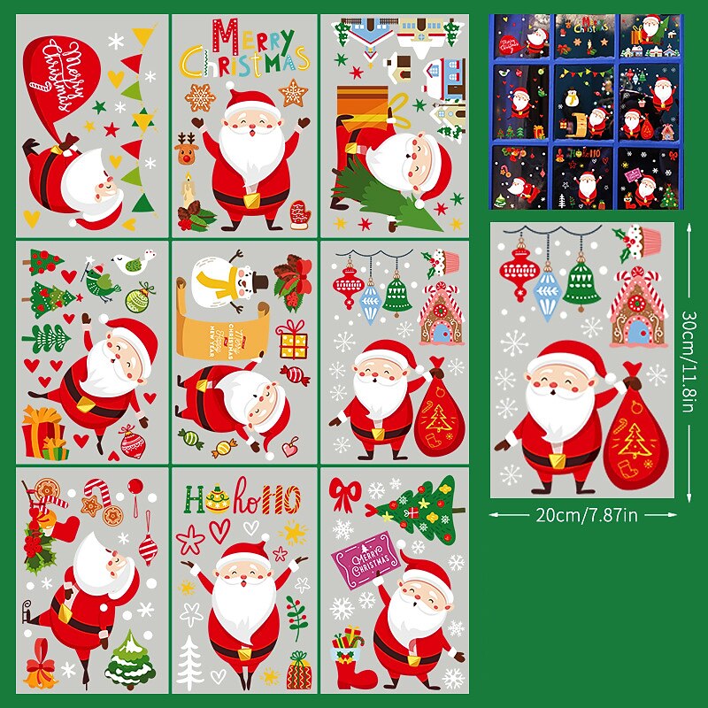 2023 Christmas Static Electricity Window Stickers Santa Claus Snowman Elk Display Window Glass Decoration Stickers 21