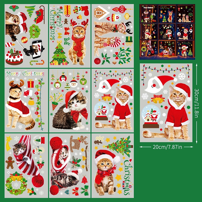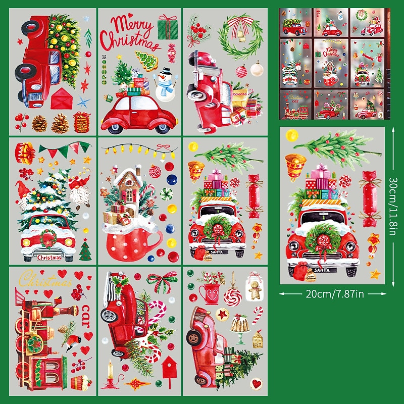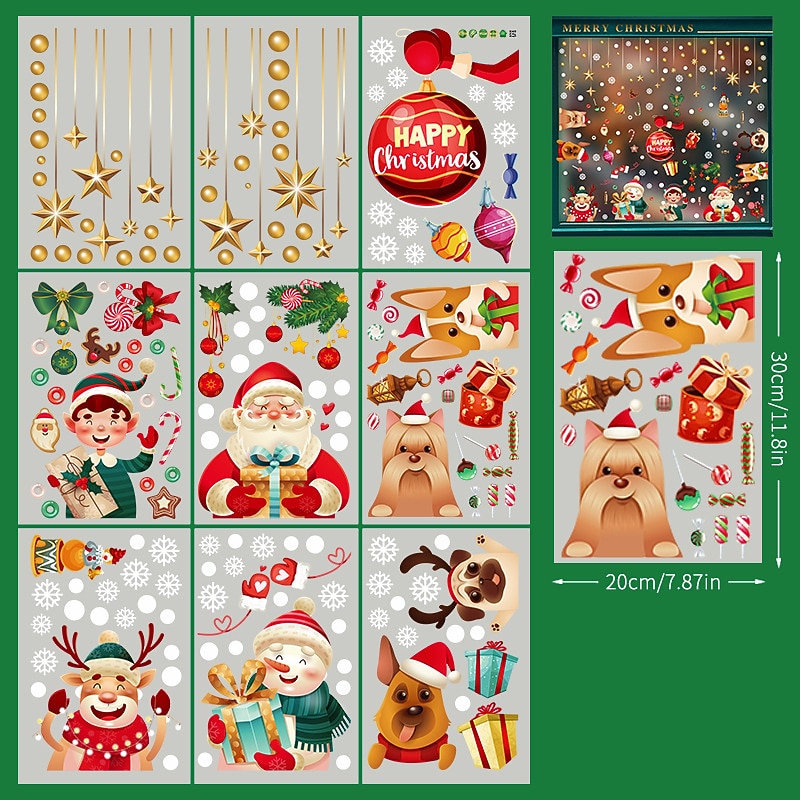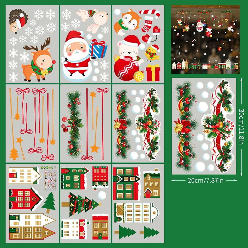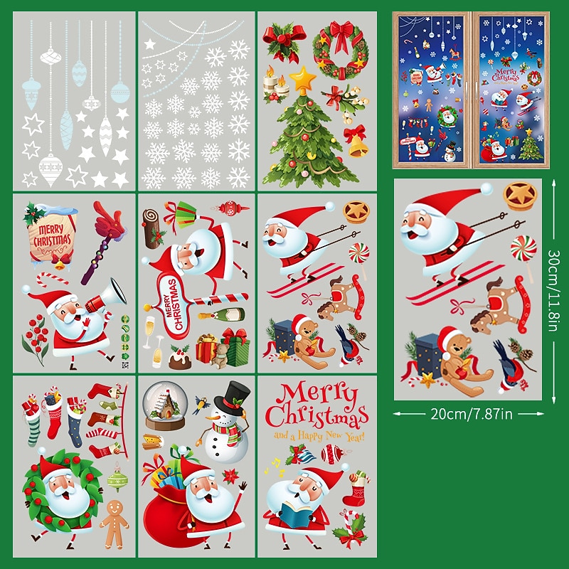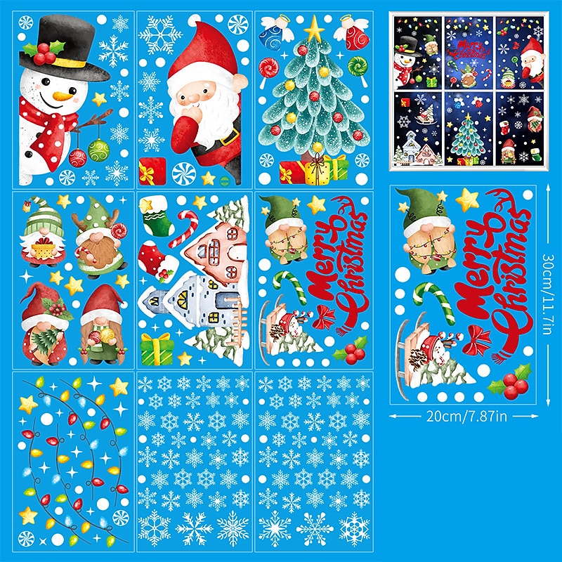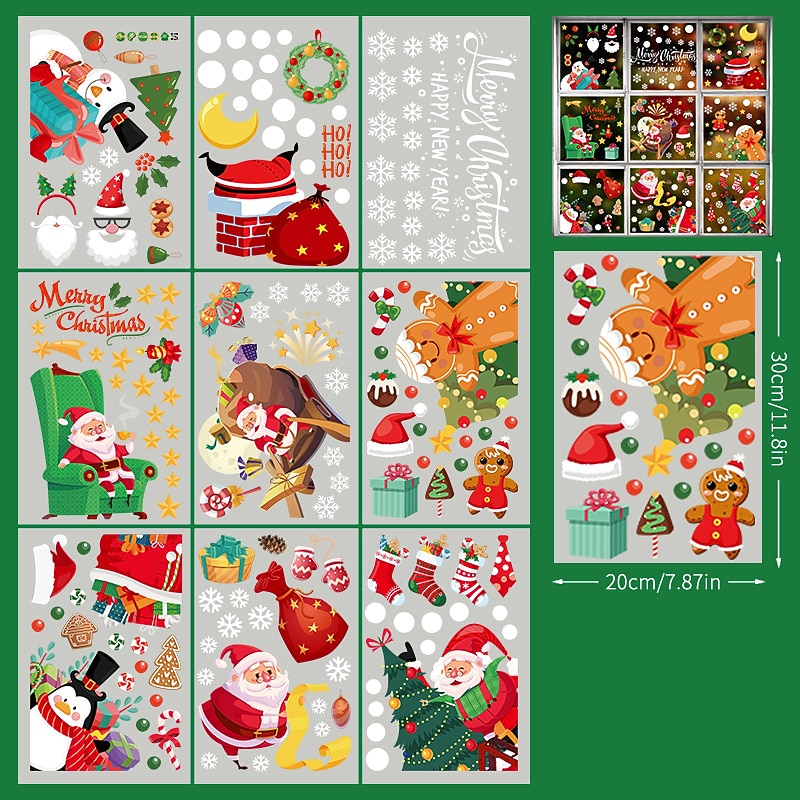 2023 Christmas Static Electricity Window Stickers Santa Claus Snowman Elk Display Window Glass Decoration Stickers 21