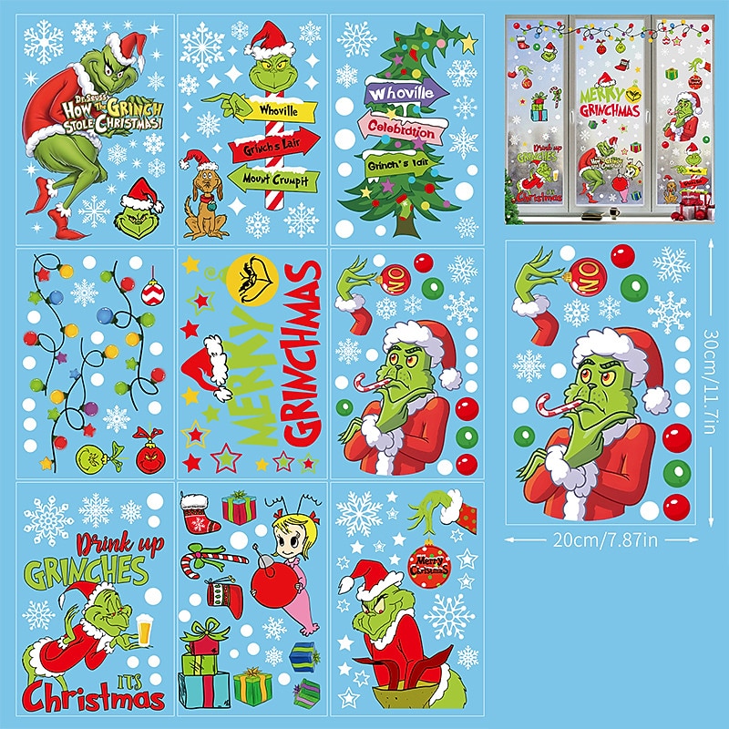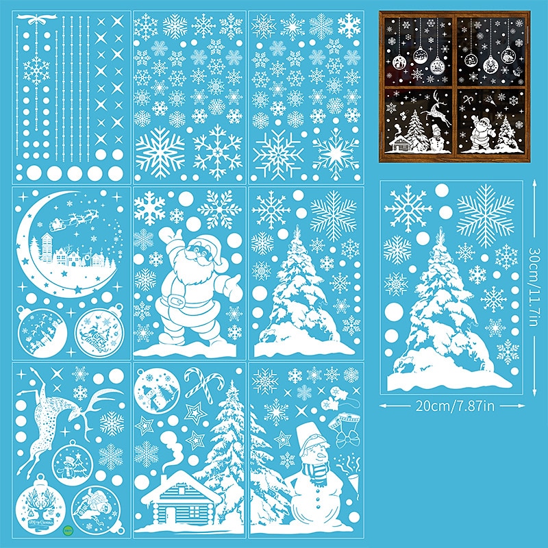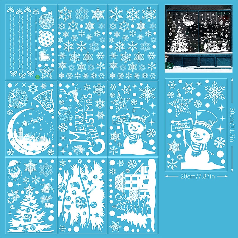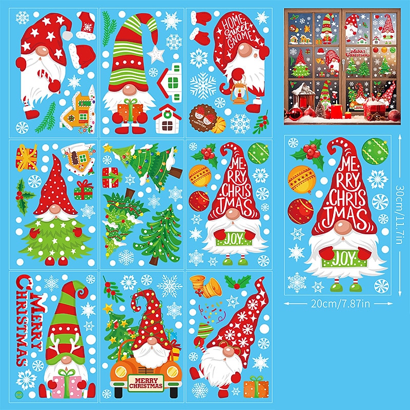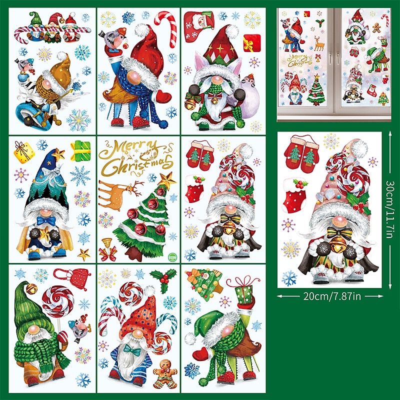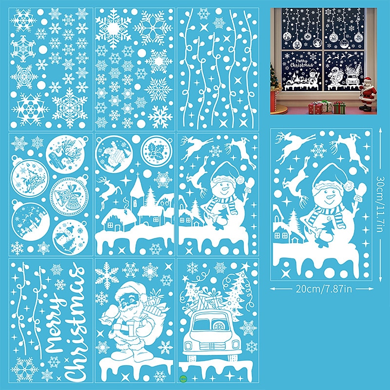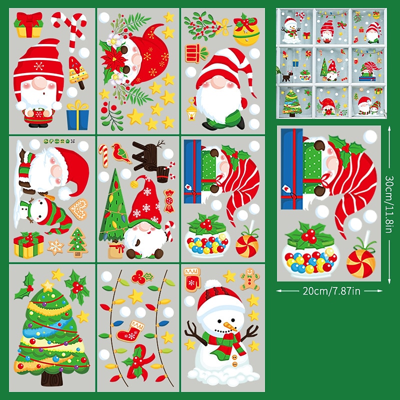 HOT ! 2023 Christmas Static Electricity Window Stickers Santa Claus Snowman Elk Display Window Glass Decoration Stickers
