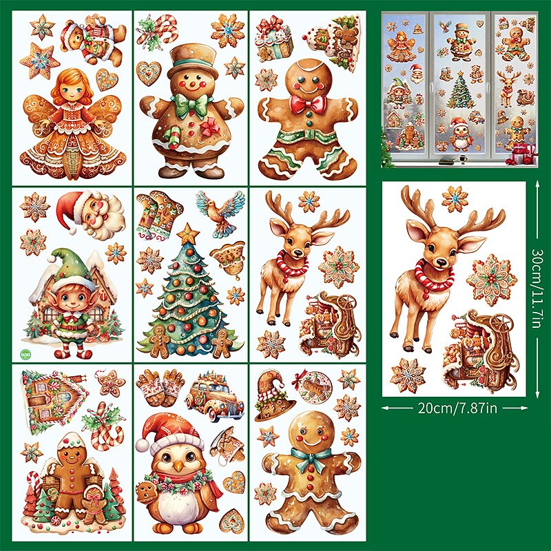 2023 Christmas Static Electricity Window Stickers Santa Claus Snowman Elk Display Window Glass Decoration Stickers 24