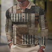 More information about Men's Plaid Waffle Polo Shirts Golf Shirt Long Sleeve Polo Shirts Collared Shirts Casual Vacation Wear Formal Wear Festival Wear Buttons 3D Print Spring Fall Winter Brown