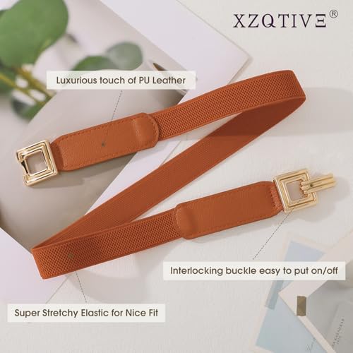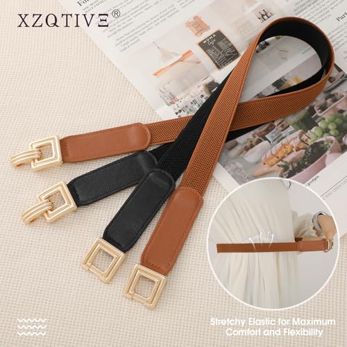 sought-after ! XZQTIVE 2 Pack Women Skinny Stretchy Cinch Belt for Dresses, Thin Elastic Belt Ladies Waist Belt with Retro Gold Buckle