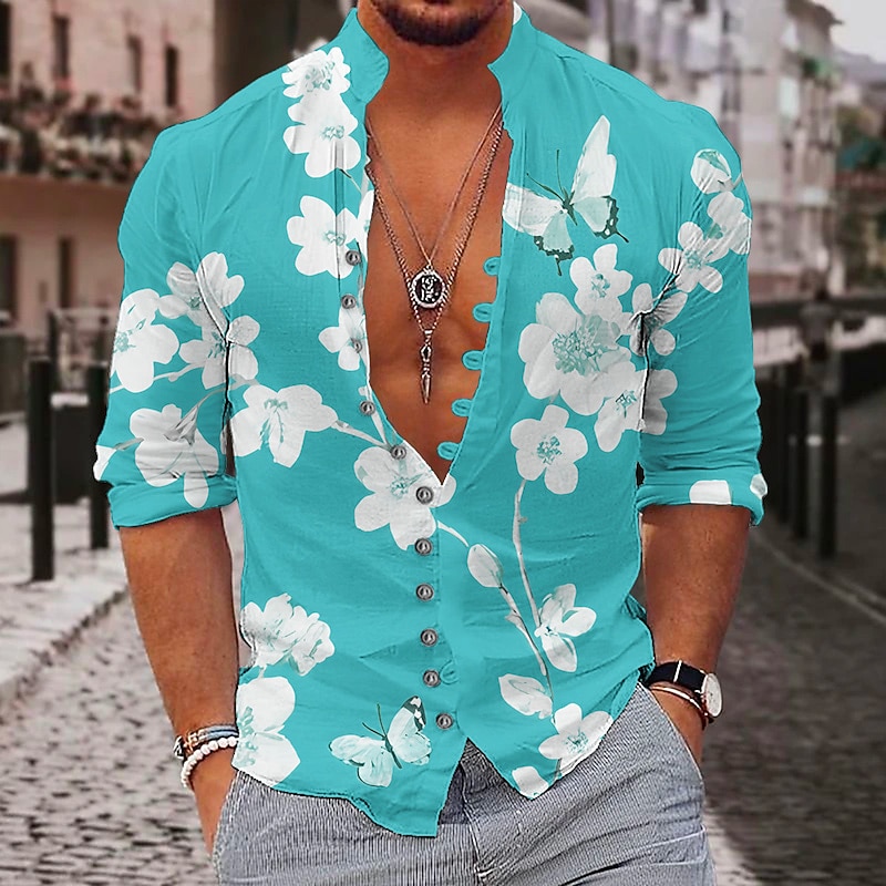 Highlights [Fabric:] Crafted from high-quality polyester, this men's shirt offers lightweight and breathable comfort, perfect for warm weather and casual outings. [Fit Type:] Designed with a regular fit, this shirt provides a relaxed yet fashionable silhouette, making it suitable for various body types and ensuring ease of movement. [Design Highlights:] The shirt features a bold red background with an eye-catching white floral and butterfly print. It includes a subtle mandarin stand collar and button detailing, adding a sophisticated touch. The long sleeves and button-up design enhance its elegant yet casual appeal. [Occasions:] Ideal for a range of occasions, from daily streetwear and casual outings to outdoor activities and going out. Pair it with jeans or casual trousers for a laid-back yet stylish look that stands out. [Size Range:] Available in sizes S, M, L, XL, 2XL, and 3XL, ensuring a suitable fit for various preferences and body types.