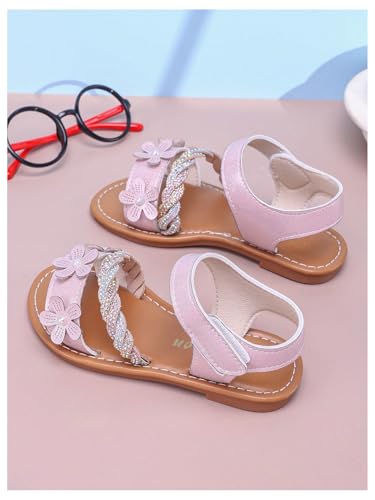 GORGLITTER Girl's Flower Ankle Strap Flat Sandals Glitter Rhinestone Round Toe Summer Beach Vacation Sandal Slippers 5