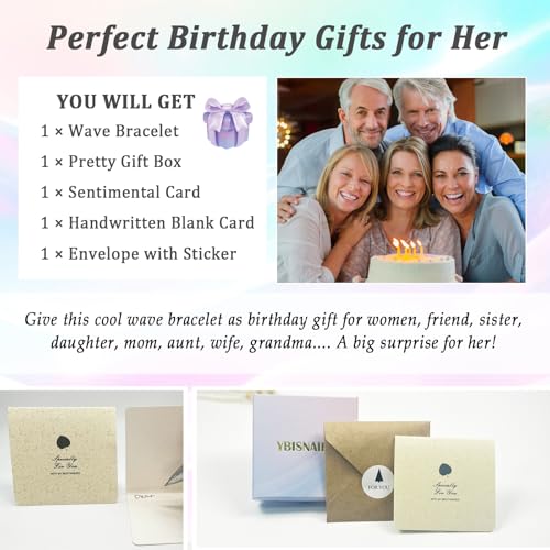 Birthday Gifts for Women, Cool Waves Bracelet Gift for Happy Birthday 21st, 30th, 40th, 50th, 60th Birthday Gift Ideas for Women Ladies Bestie Friend Sister Mom Daughter Wife Grandma 7