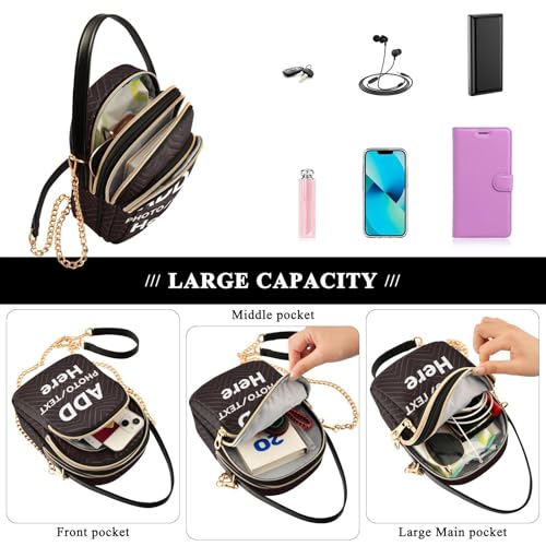 Origin: ImportClosure type: ZipperPERSONALIZED CUSTOM:Simply click Customize Now to start personalizing with your own images, text, or logosMaterial and Size:This small crossbody purse for women is made of ultrasonic wavy fabric.Size:Body: 5.9*8.23*3.1 in, chain length: 51.1inWell-Designed: This crossbody bag is not only sleek, but also practical and relaxing to use,Use it in a variety of ways, such as shoulder and back, hand and crossbodyStructure: Features three zipper pockets, including a smaller one for credit cards, cash, keys, headphones and other essential items. The larger pockets can hold up to 6.8 in of smartphonesOccasion:a versatile bag for beach, shopping, travel, holiday, pool, teaching, work, yoga and more