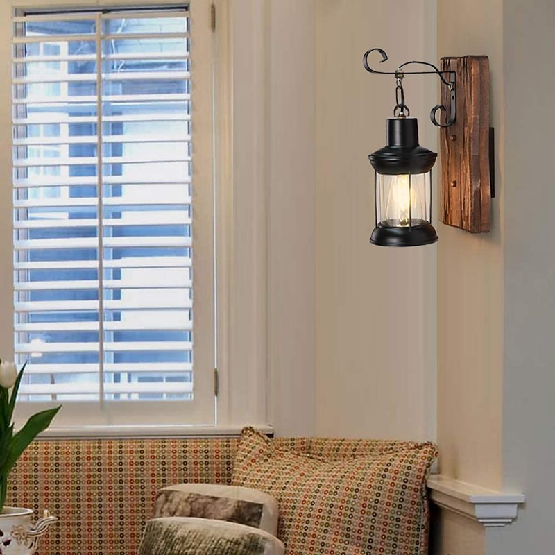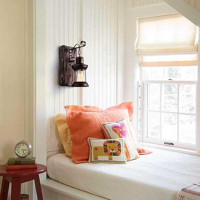 Lightinthebox LED Wall Light Vintage Retro Wooden Metal Painting Color Wall lamp Sconces Lighting Fixture With 6FT Plug In Cord And On/Off Switch EU/US Plug AC85-265V 1