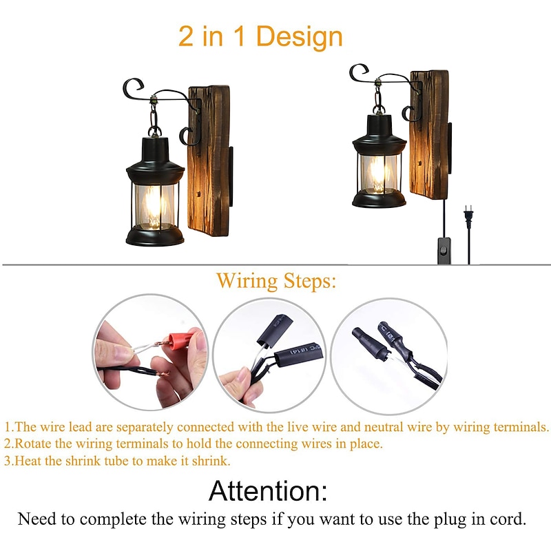 Lightinthebox LED Wall Light Vintage Retro Wooden Metal Painting Color Wall lamp Sconces Lighting Fixture With 6FT Plug In Cord And On/Off Switch EU/US Plug AC85-265V 2