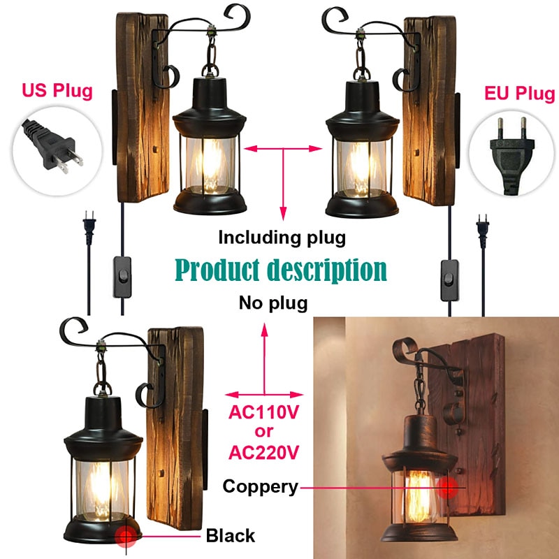 More information about Lightinthebox LED Wall Light Vintage Retro Wooden Metal Painting Color Wall lamp Sconces Lighting Fixture With 6FT Plug In Cord And On/Off Switch EU/US Plug AC85-265V