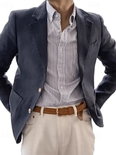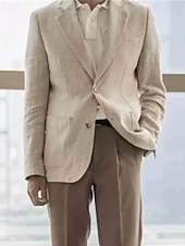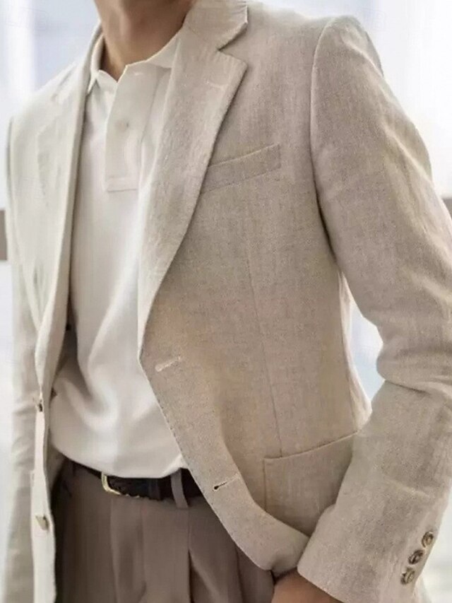 More information about Men's Linen Blazer Blazer Business Cocktail Party Wedding Party Fashion Casual Spring Fall 30% Linen 60% Polyester Plain Pocket Buttons Comfortable Single Breasted Blazer Navy Blue Beige