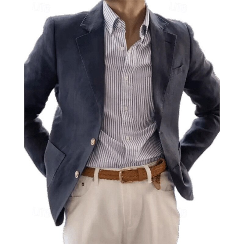 HOT ! Men's Linen Blazer Blazer Business Cocktail Party Wedding Party Fashion Casual Spring Fall 30% Linen 60% Polyester Plain Pocket Buttons Comfortable Single Breasted Blazer Navy Blue Beige