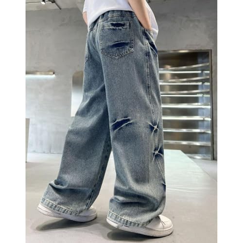 Baggy Jeans for Kids Y2K Straight Wide Leg Casual Elastic Waist Loose Fit Denim Pants Vintage Jeans with Pockets 6