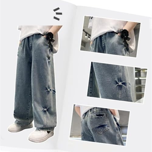 Baggy Jeans for Kids Y2K Straight Wide Leg Casual Elastic Waist Loose Fit Denim Pants Vintage Jeans with Pockets 7