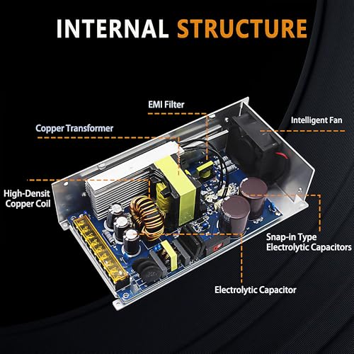 • 【Intelligent Heat Dissipation for Long-term Durability】For long-lasting durability and reliability, our product boasts intelligent heat dissipation features. Integrated with a cooling fan, ventilation holes, and a temperature detector, it intelligently adjusts the fan speed to effectively reduce the PSU temperature. This not only ensures optimal performance but also extends the lifespan of the AC to DC power converter.