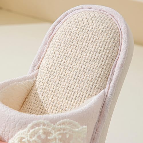 Lace Bow Slippers for Women Indoor Summer Linen Slippers Sandals Bow Tie Open Toe Home Slides Bedroom Non-Slip House Shoes Cozy Breathable Slippers with Bows 6