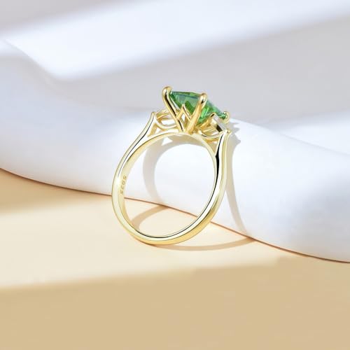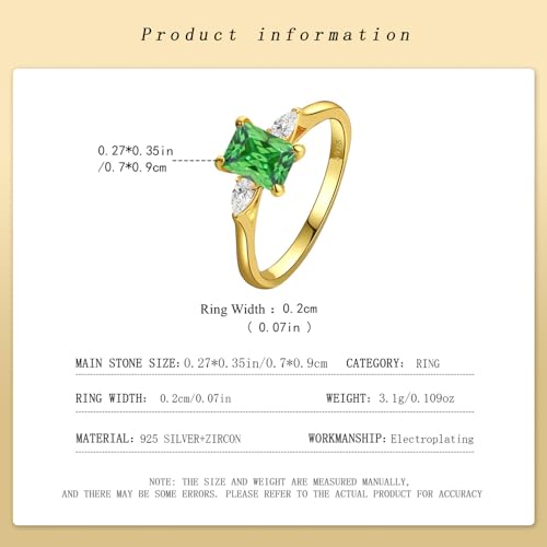 • PREMIUM DESIGN: 925 Sterling Silver ring featuring a stunning emerald-green square-cut zircon centerpiece flanked by teardrop clear zircon accents in gold-plated setting