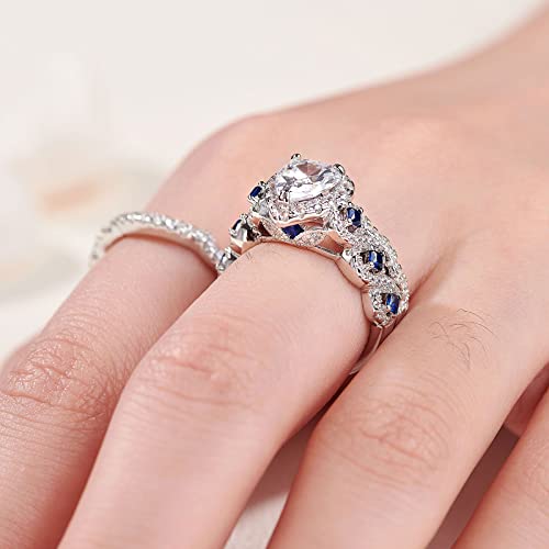 Newshe Jewellery Engagement Wedding Ring Set AAAAA Cz Rings for Women 925 Sterling Silver 3pcs 2.5ct Pear Shape White Blue Size 5