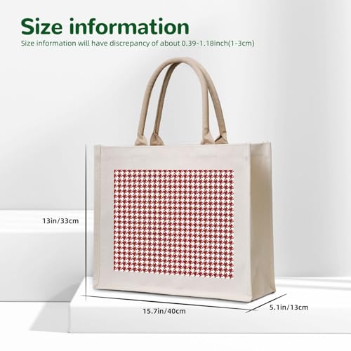Red Houndstooth Canvas Tote Bag For Women - Washable Reusable Bag With Wide Comfort Handles, Ideal For Camping, Beach & Groceries