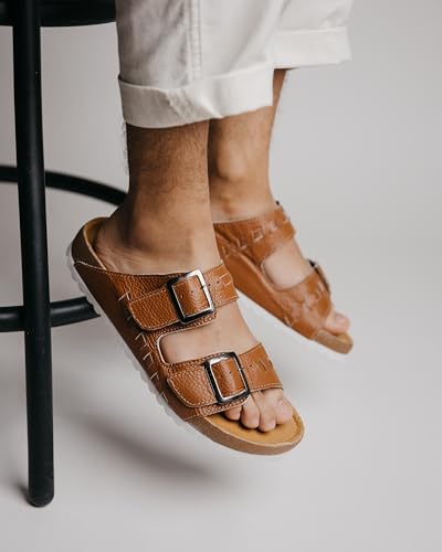 Mexico en la Piel Men's Handmade Leather Huarache Sandals - Flats, Double Buckle Adjustable Closure, Open-Toe Design, EVA Sole, Casual and snug Shoes for Daily Wear