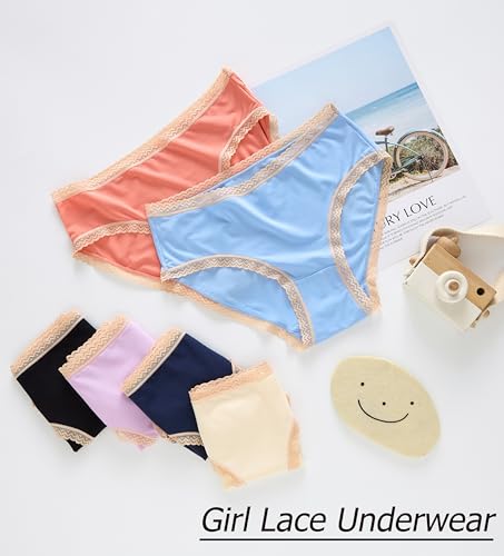 Sladatona Teen Girls Viscose from Bamboo Underwear Girls Lace Trim Tagless Soft Briefs(Pack of 6) 5