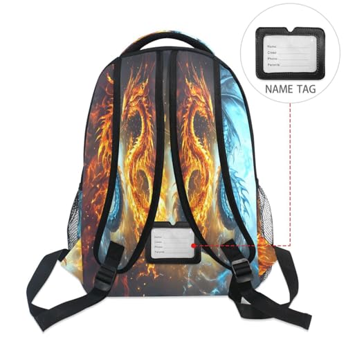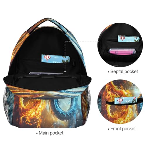Funny Dragon Fire Water Backpack for School Boys Girls Adults Kids Bookbag Laptop Bag 15L 1