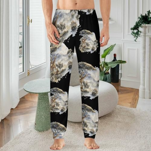 • Unique Pattern Designs: Stand out with our specially created patterns featured on these men's pajama bottoms. Each pair of pajamas showcases artwork, blending various elements like florals or emblems. Wear distinctive style with our pajama pants featuring exclusive graphic prints