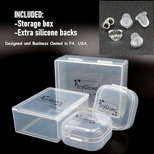 • This is a Fine quality Small Studs Earrings are Good for Small Earlobe or Second Ear Piercings. ( Post Length 10mm / 3/8" One Size Fits All ) The back of this ear stud is Push Back with 925 Sterling Silver Post and Back Lightweight, easy to take in and out, yet stay securely in place And Comfy. Hypoallergenic, lead & nickel free Safe for sensitive ears. (comes with Sterling Silver Butterfly back , Extra Clear Silicone Bullet Clutch Ear Nuts for Earring Safety Backs and Little Plastic stored box.