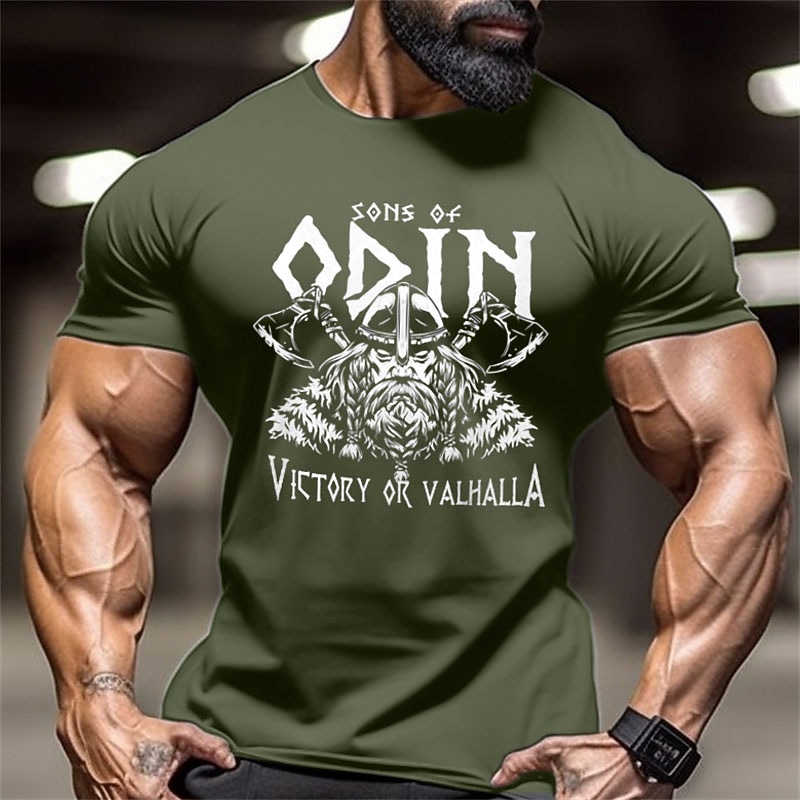 HOT ! Men's Graphic T-Shirt | Viking Sons of Odin, Victory or Valhalla Norse Mythology Short Sleeve Tee