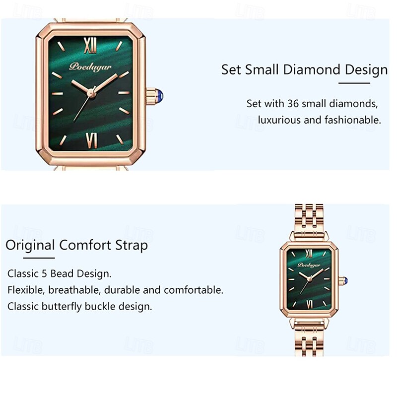Women's Luxury Square Dial Quartz Watch – Waterproof Stainless Steel Bracelet, Diamond Accents, Elegant Retro Style 11