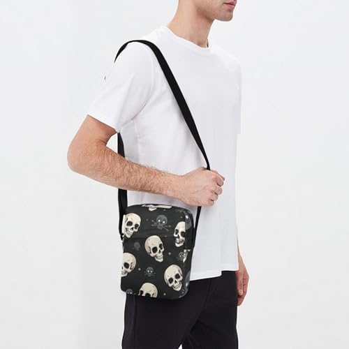 KLL Black Skulls Halloween mens messenger bag Vegan Leather mens crossbody bag Casual Woman Handbag Shoulder Strap 1