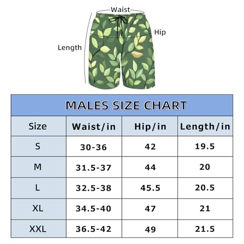 HOT ! Men's Swim Trunks Size S Green Leaves with Mesh Lining Soft Breathable Quick Dry Beach Shorts