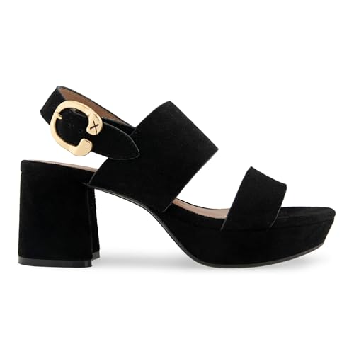 AEROSOLES Women's Camera Platform Heeled Sandal, Black Suede, 8.5 Wide