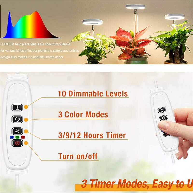 Plant Light Angel Ring Fleshy Fill light USB Colored Full Spectrum LED Bonsai Indoor Timed Dimming Growth Light is Suitable For Indoor Plants Potted Meat Fish Tank Plants  1PC 10