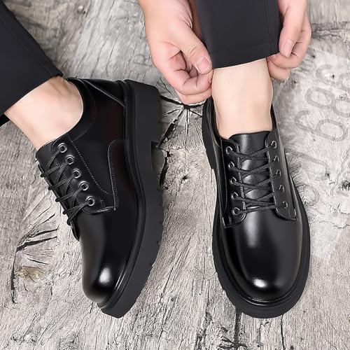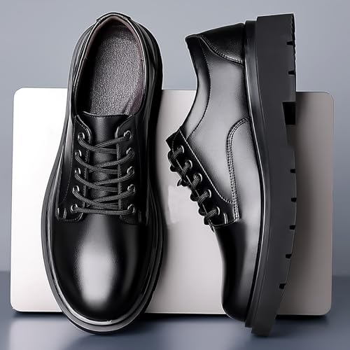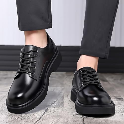 Men's Leather Lace Up Platform Oxfords Retro Comfortable Round Toe Non-Slip Lug Sole Casual Derbys Dress Shoes for Formal Business Office Leather Shoes 6