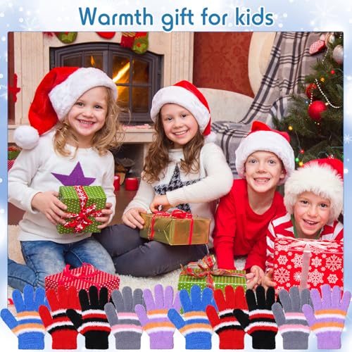 HOT ! Crowye 50 Pairs Kid Gloves Bulk Winter Full Fingers Knitted Fleece Warm Colorful Fluffy Stripe Stretchy Gloves