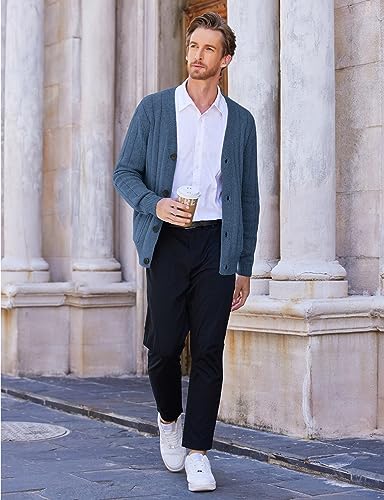 COOFANDY Men's Cardigan Sweater Cable Knit V Neck Button up Sweaters Ribbed Cardigan Sweater with Pockets 6