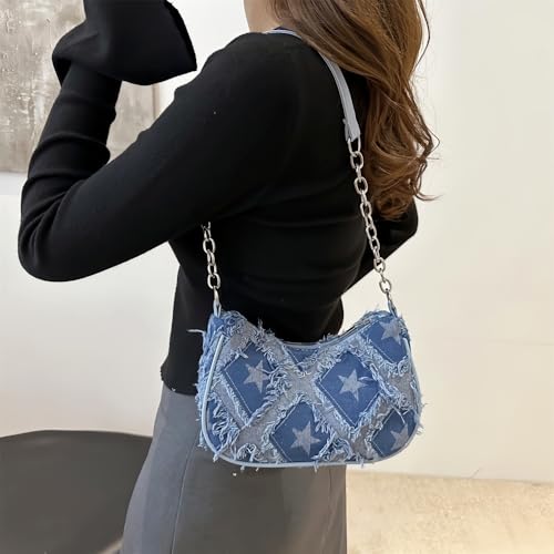 sought-after ! Denim Shoulder Bag for Women, Retro Checkered or Star Pattern Underarm Purse Vintage 90s Y2K Small Handbag Teen Girls