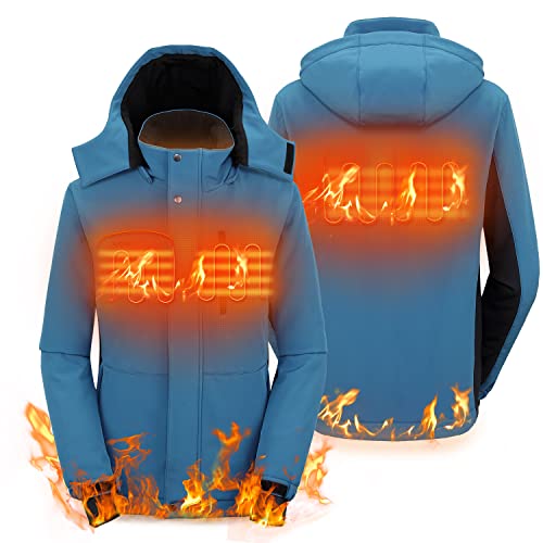 Men's Heated Jacket Windproof Winter Outdoor Soft Shell with Detachable Hood Electric Heated Coat 5