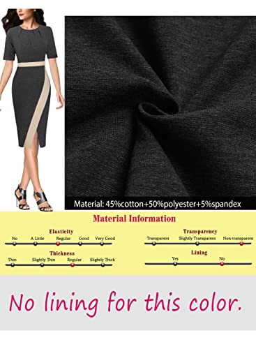 VFSHOW Womens Pleated Crew Neck Patchwork Front Slit Work Business Office Party Bodycon Sheath Pencil Dress 6