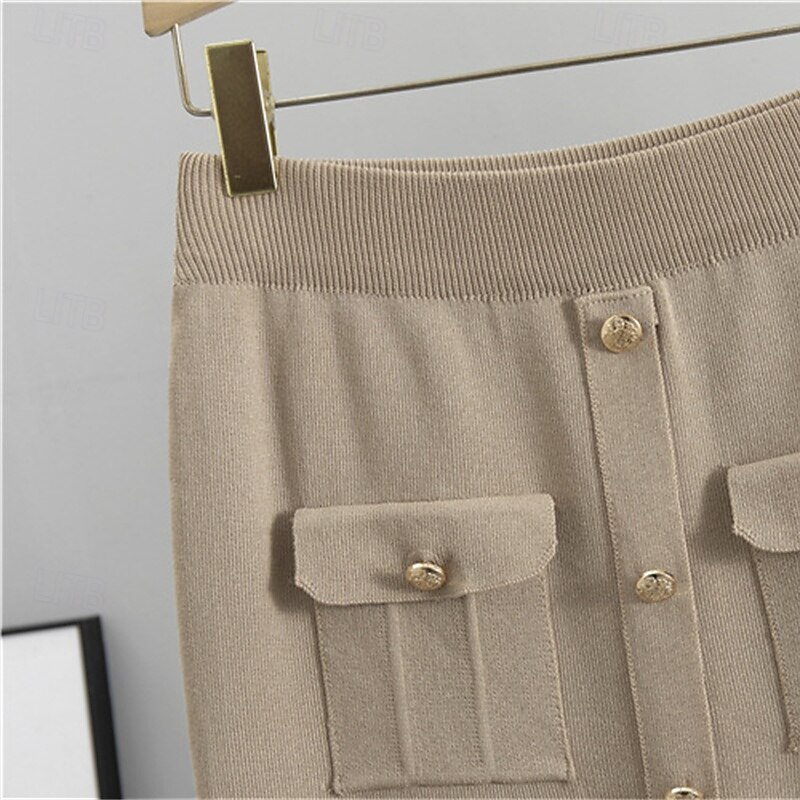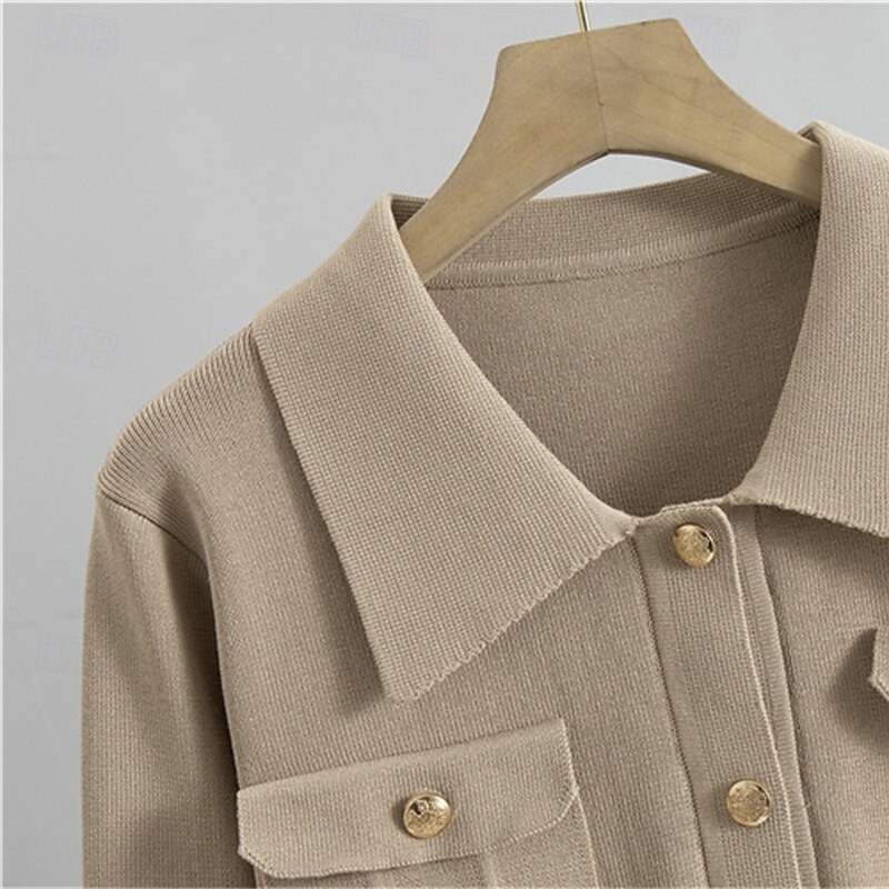 More information about Women's Dress Set Shift Dress Casual Semi Formal Plain Pocket Midi Dress Long Sleeve Shirt Collar Outdoor Date Black Khaki Apricot Fall Loose Fit