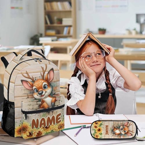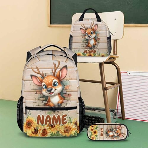 HOT ! Boys Backpack, Personalized Deer Backpacks, Custom Funny Kids Bookbag, Preschool Elementary Kindergarten School Bag for Boys, Set of 3 17 Inch Animal Bookbags for School Travel