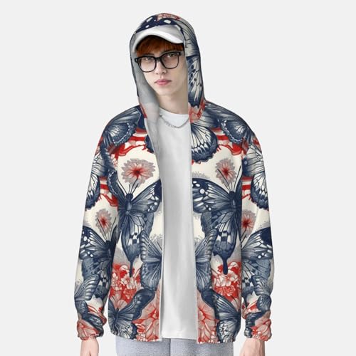 HOT ! Men's UPF 50+ Sun Protection Hoodie Long Sleeve Fishing Shirts Quick Dry Blue Butterfly Poster Sun Shirt Jacket