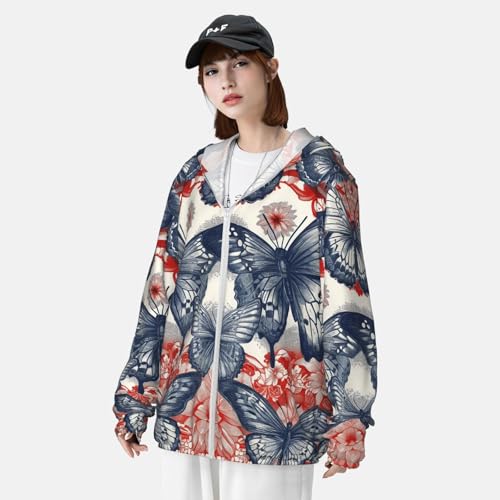 • COOLING FABRIC: Blue Butterfly Poster Long sleeve sun shirt are made of moisture-wicking fabric, the mesh panels at two sides enhanced ventilation. Sun jackets has perfect breathable and quickly wick away perspiration, keeping you dry and comfortable every day.