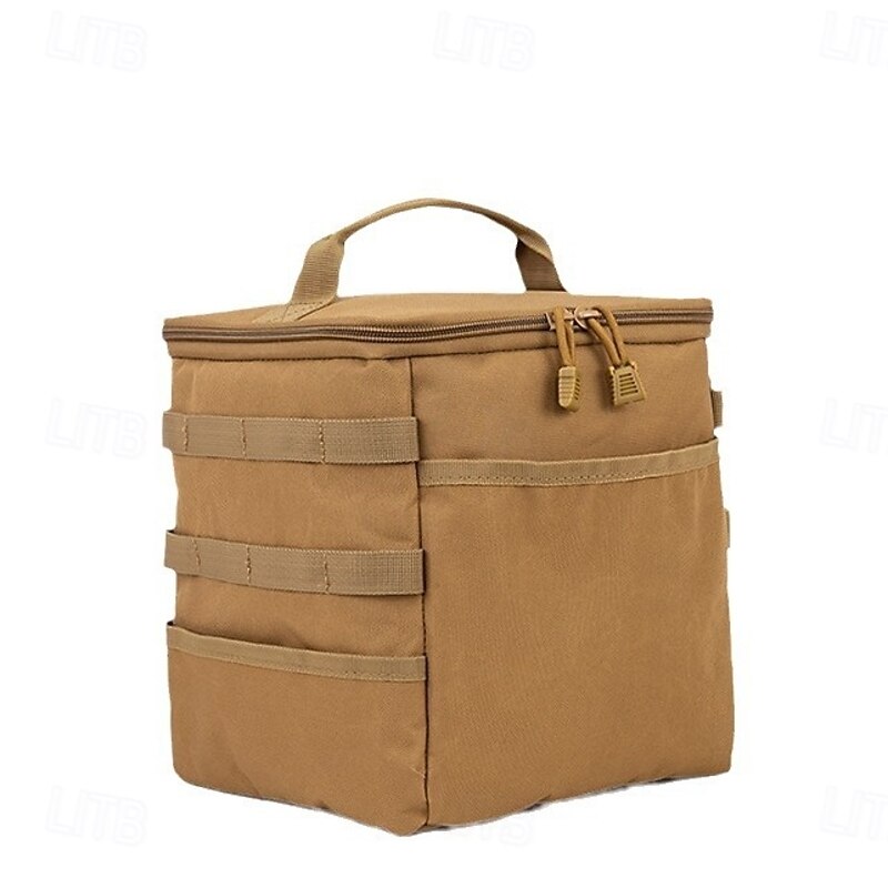 Highlights Waterproof Fabric : The camping bag is made of waterproof fabric with an impact reinforcement layer and anti-scratch design, effectively protecting your valuables from the elements. Large Capacity : Designed for camping, this bag features a spacious main compartment that easily accommodates your daily camping gear and supplies. Divided Side Pockets : The bag’s divided side pockets help organize your items, keeping dinner plates, cookware, and other accessories separated and easily accessible. Webbing Straps on Both Sides : The special webbing straps on both sides of the bag are not only stylish but also practical for carrying smaller items. Multi-Layered Storage : The bag offers multi-layered, spacious storage that suits items of varying sizes, making it ideal for storing cooking pots, bowls, gas canisters, and other camping tools. It is durable, wear-resistant, and easy to clean.