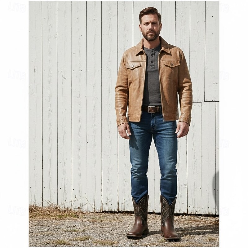 HOT ! Men's Tan Western Ankle Boots with Chevron Pattern - Premium Leather, Stylish, Perfect for Casual Wear, Cowboy Events and Outdoor Adventures