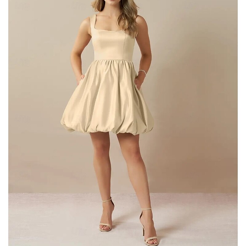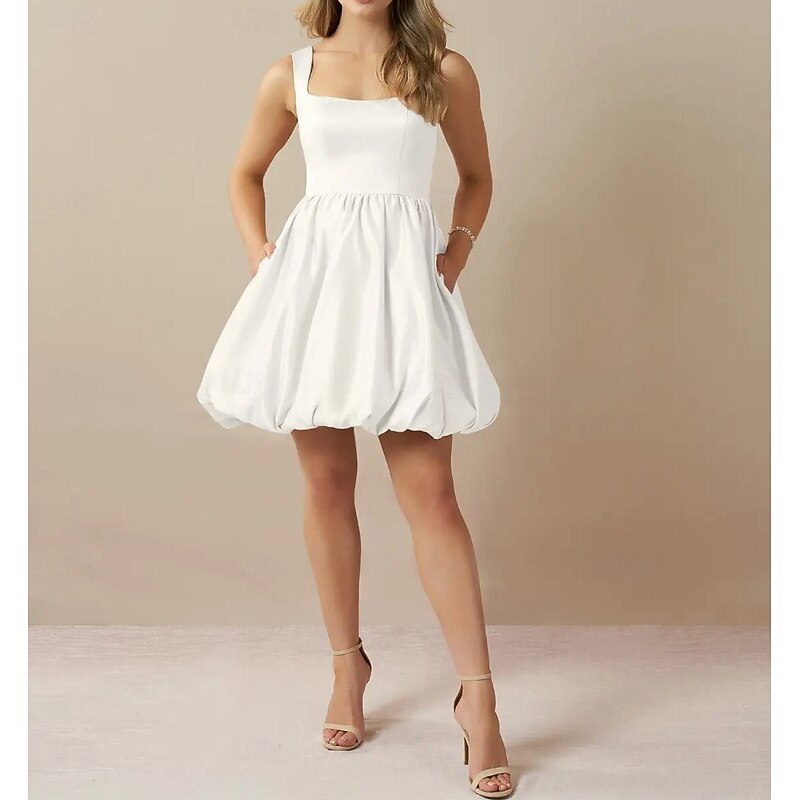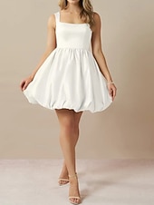 More information about Engagement Little White Dresses Wedding Dresses A-Line Square Neck Sleeveless Short / Mini Taffeta Bridal Gowns With Pleats