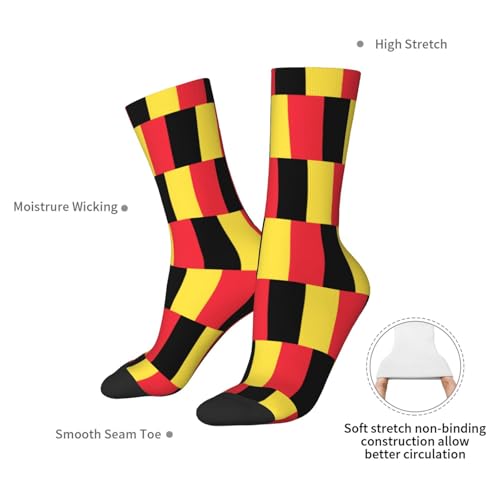 • COMFORTABLE AND DURABLE - Our Flag of Belgium Sports Socks Are Comfortable And Breathable, Made From 95% Polyester And 5% Spandex To Ensure Durability.