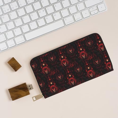 HOT ! Leather Thin Slim Wallets for Women & Men - Dark Red Lion A Print Card Wallet Holder with Zipper