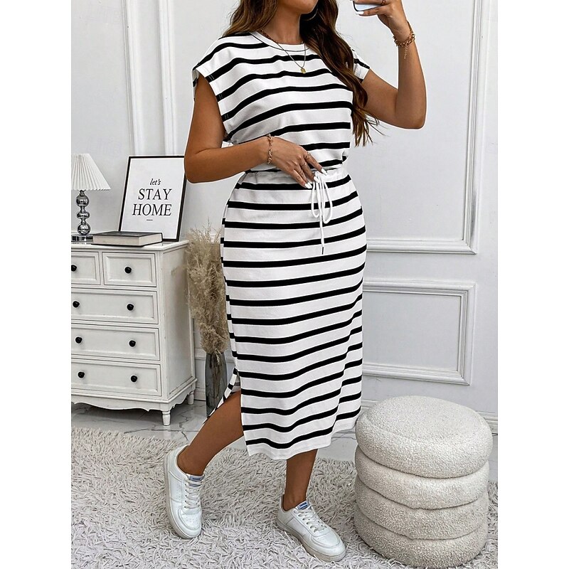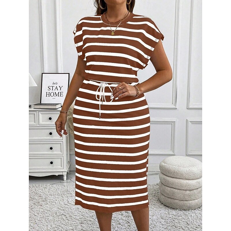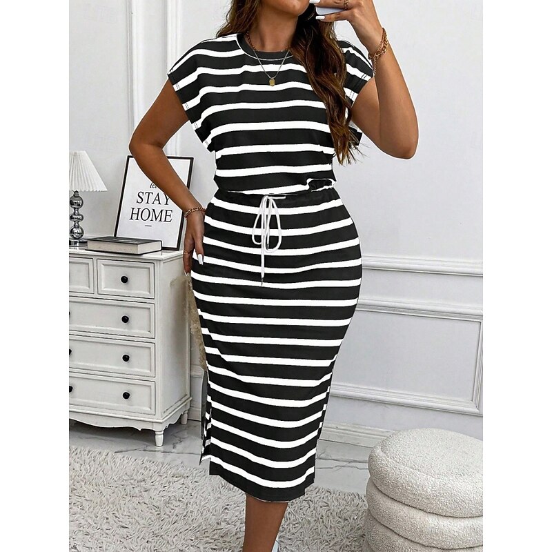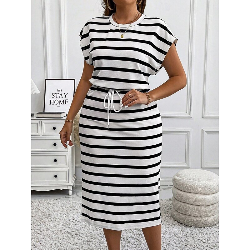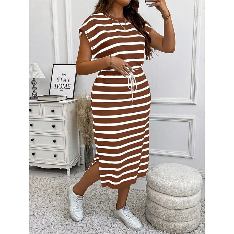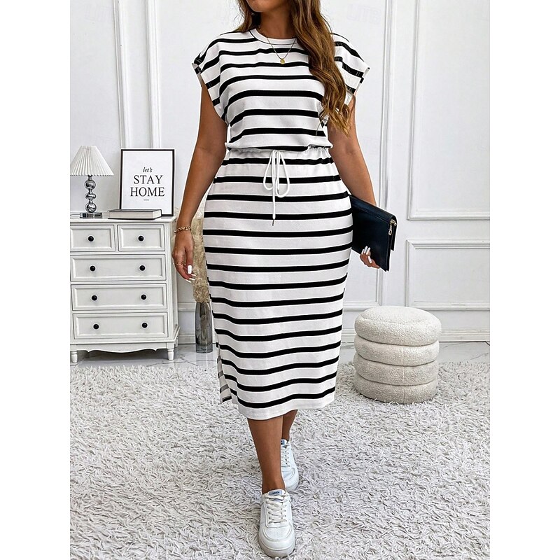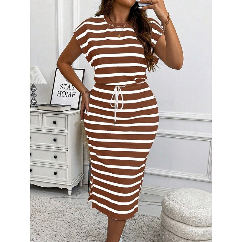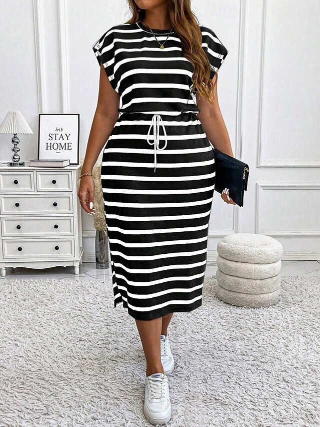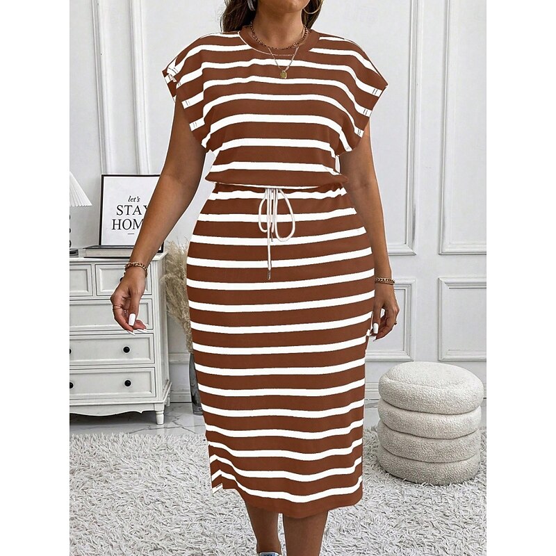 HOT ! Women's Plus Size Casual Dress Striped V Neck Short Sleeve Summer Spring Fashion Modern Casual Midi Dress Daily Holiday Dress